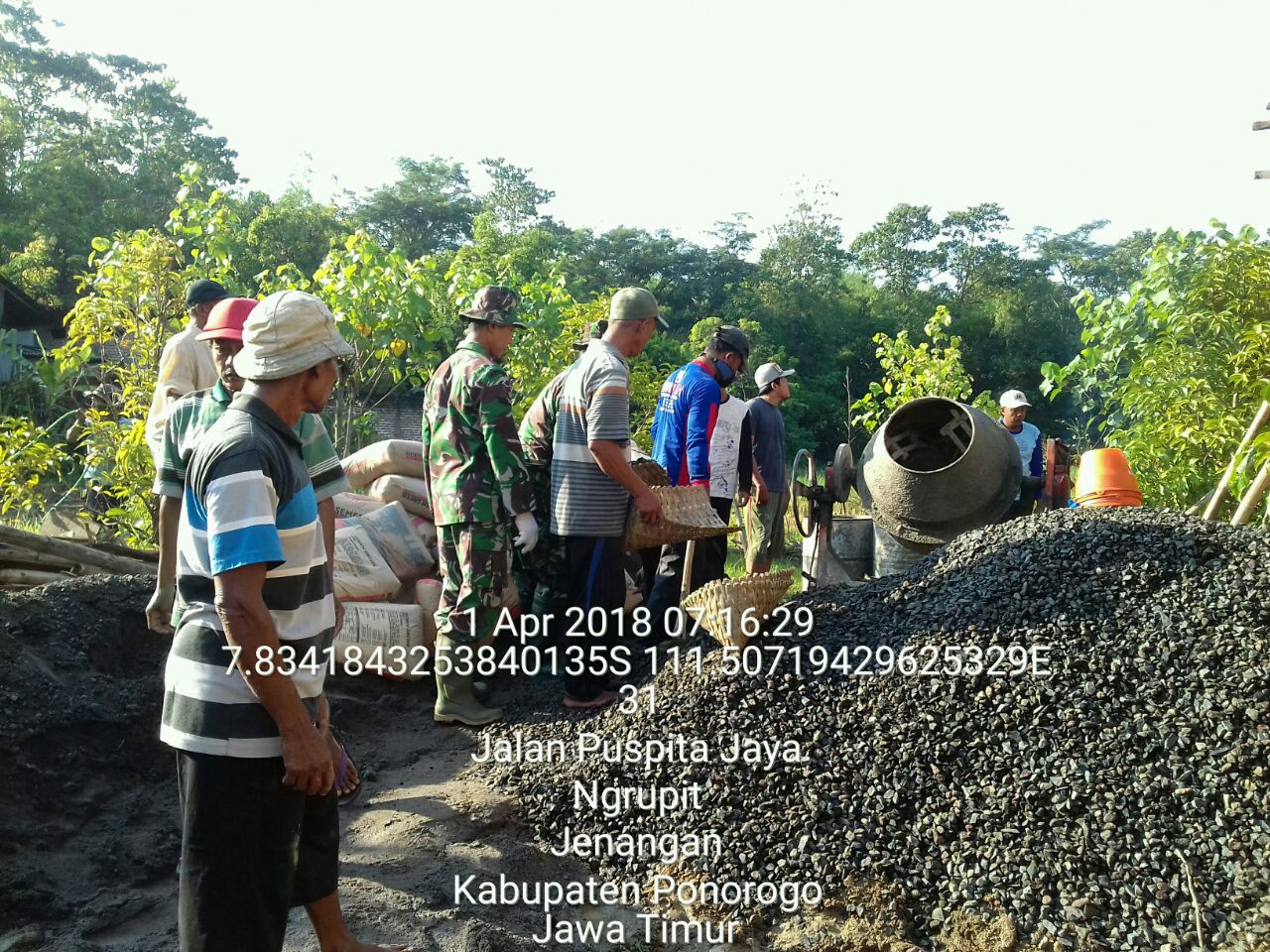 Ponorogo,- Masyarakat Desa Ngrupit Kecamatan Jenangan yang memiliki cita-cita memiliki sebuah Pondok Pesantren di Lingkungannya sebentar lagi akan terwujud. Masyarakat Desa Ngrupit bersama Koramil 0802/02 Jenangan sejumlah 6 orang yang dipimpin Babinsa Kadipaten Sertu Basirun bahu-membahu melaksanakan Karya Bakti melaksanakan pembangunan Ponpes Bustanul 'Usysyaqil Qur'an (BUQ).(01/04/2018)