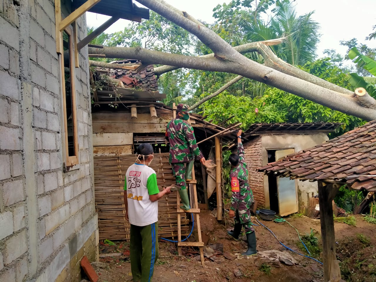 “ Disinyalir akibat hujan deras disertai angin kencang yang terjadi tadi malam, mengakibatkan pohon tumbang menimpa rumah milik warga di desa binaan saya (Desa Singgahan), “ kata Serda Wahdiannor.